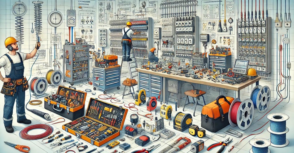 When installing electricity in a home or workplace, the following components and tools are essential: