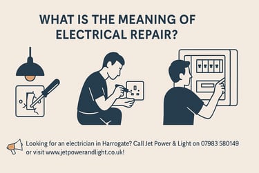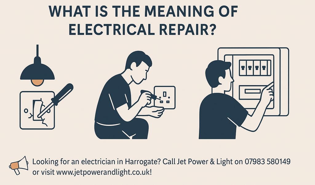 Electrical repair means fixing anything that uses or conducts electricity when it stops working properly. This could be a blown fuse, a faulty light fitting, a broken power socket, or even a full rewiring job in a home or business.