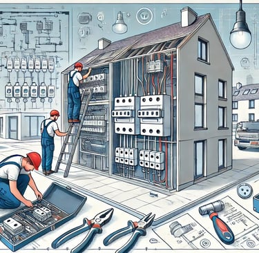 Electrical installation involves setting up the entire electrical system within a building. This includes wiring, outlets, switches, lighting, grounding, and consumer units (also known as fuse boxes). A well-planned installation ensures that electricity is safely and efficiently distributed, providing convenience while adhering to safety standards.